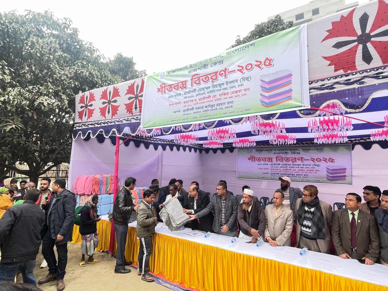 রাজশাহী, ২৪ জানুয়ারি ২০২৫: আজ সকালে ইঞ্জিনিয়ার্স ইনস্টিটিউশন, বাংলাদেশ (আইইবি) রাজশাহী কেন্দ্রের উদ্যোগে শীতবস্ত্র বিতরণ কর্মসূচি অনুষ্ঠিত হয়। এই উদ্যোগটি বিশেষভাবে অসহায় এবং গরিব জনগণের মধ্যে শীতকালীন সহায়তা পৌঁছে দেওয়ার লক্ষ্যে পরিচালিত হয়েছে। অনুষ্ঠানটি আইইবি প্রাঙ্গণে অনুষ্ঠিত হয় এবং এতে প্রধান অতিথি হিসেবে উপস্থিত ছিলেন প্রকৌশলী মোহাম্মদ রিয়াজুল ইসলাম (রিজু), যিনি আইইবি সদর দপ্তরের প্রেসিডেন্ট। এছাড়া, বিশেষ অতিথি হিসেবে উপস্থিত ছিলেন অধ্যাপক ড. প্রকৌশলী মো. সাব্বির মোস্তফা খান, সম্মানী সাধারণ সম্পাদক, আইইবি সদর দপ্তর, রমনা, ঢাকা।