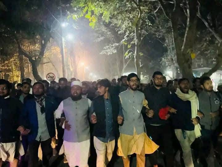 ২৩ জানুয়ারি ২০২৫: রাজশাহী বিশ্ববিদ্যালয়ে ছাত্র শিবির কুরআন পুড়ানোর ঘটনায় সুষ্ঠু তদন্ত ও দোষীদের চিহ্নিত করার দাবিতে বিক্ষোভ মিছিল করেছে। মিছিলে শিবিরের সদস্যরা “কুরআন পুড়ানো মেনে নেয়া যাবে না” স্লোগান দেন।